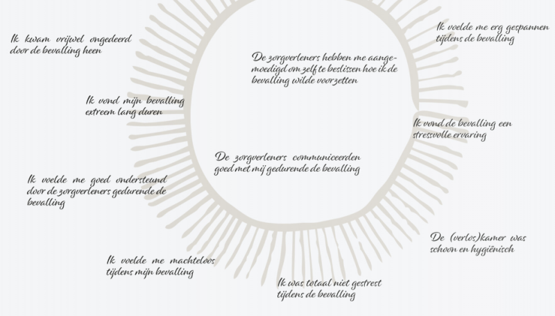 Deze tool kan je helpen om de bevalling in kaart te brengen. Jij kiest over welke zinnen je iets op wilt schrijven. De omschreven ervaringen mag je letterlijk nemen, maar dat hoeft niet. Je mag alle gedachten, emoties en herinneringen die bij een zin naar boven komen opschrijven.